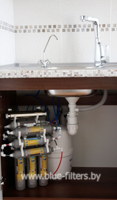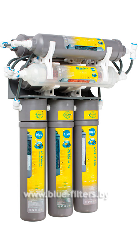 Фильтр для воды Bluefilters NL-7 – это семиступенчатаясистема очистки воды, которая встраивается под мойку в кухню. На первых пяти ступенях вода очищается, а затем - на оставшихся двух - восстанавливается.